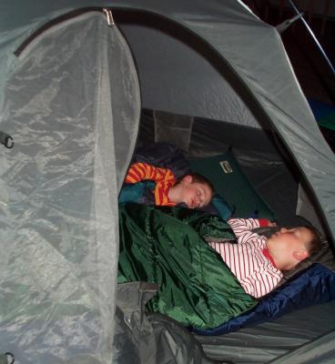 in no time. It was a nice night, but we did take them in for the remainder of the night. Trampolines are great for lightweight younguns, but with an adult in there it would have been like sleeping in a funnel! |