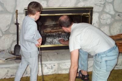 Of course every young boy dreams to tame the power of the flame. Here Bruce is taking his baby steps towards this goal. Dad let him make balls of newspaper for lighting things!