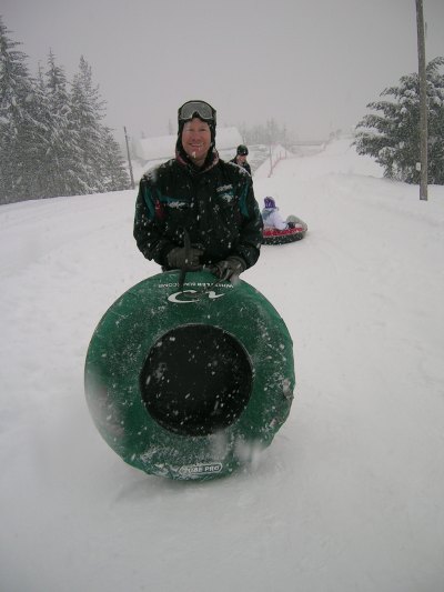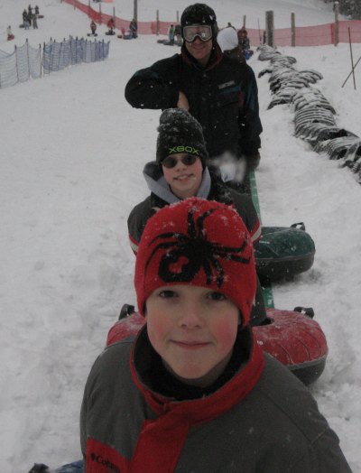 appropriate that tube sliding took place during a solid snowfall. Kirk and Dave were certainly playing "big kids" during these excursions. Funny we seemed to do more runs than the real kids. Go figure.